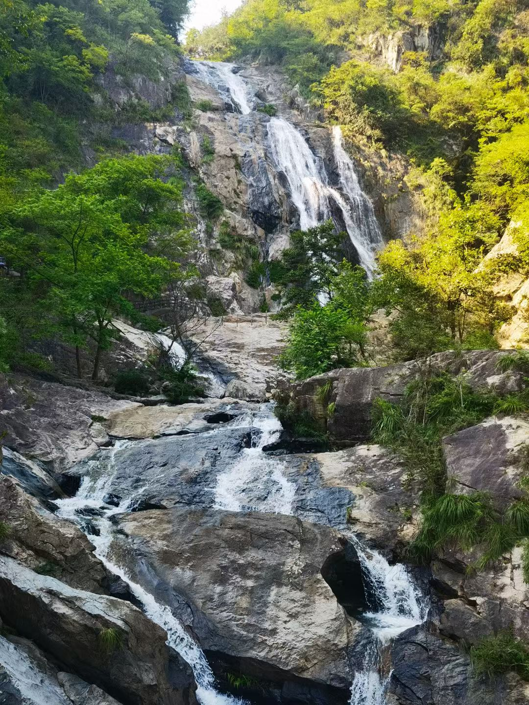 我們第一站游覽被譽為華東第一谷的“天柱山大峽谷”。峽谷內(nèi)瀑布跌落成群,通天瀑落差達百米。沿途溪流淙淙、潭水盈盈、風(fēng)景如畫。峽谷內(nèi)還有大佛聽濤、猿人戲水、雄獅回首等怪石,栩栩如生,讓人流連忘返。