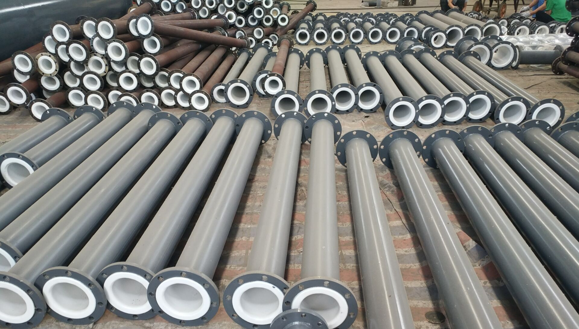 4、襯塑管堆放的時候要注意保護法蘭面,普通的法蘭面是鋼材的,對此要求不高,但是襯里管的法蘭多是塑料的,很容易被劃傷、砸傷,所以對于襯里管的安裝盡量不要把大堆的材料堆在現(xiàn)場,今天裝一點,明天裝一點,到最后剩下的法蘭面很多都不能用了。