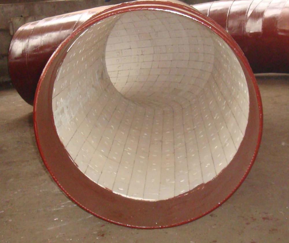 貼片陶瓷復(fù)合管該管是用耐高溫強力粘膠將氧化鋁陶瓷片粘貼在管道內(nèi)壁,經(jīng)加溫固化后形成牢固防磨層。該種產(chǎn)品制作工藝相對簡單,制作周期短,成本相對較低。把陶瓷片用高溫耐磨膠粘貼到鋼管道上,起到耐磨的作用,管道一般為白色。一般用于大口徑的管道。陶瓷貼片耐磨管道耐磨性好(比自蔓燃),使用壽命長。